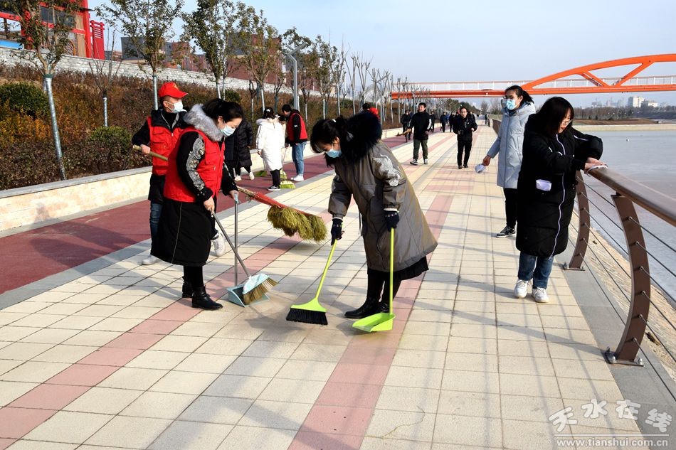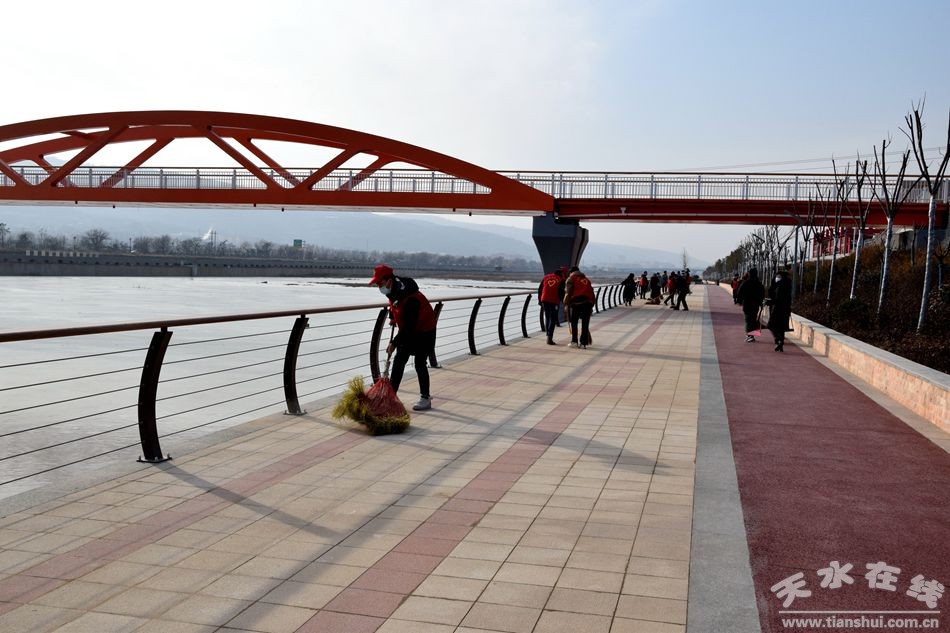 活动现场,志愿者们自带扫帚、簸箕等清洁工具,对藉河二期风情线步道、绿化带、防护栏等公共区域及设施进行了全方位环卫清扫,为藉河二期风情线开放后的第一个节日创造了一个干净整洁的好环境。